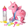 Unicorn with long mane and tail magic milk bottle small hair brushes and hair clips (2 asst)